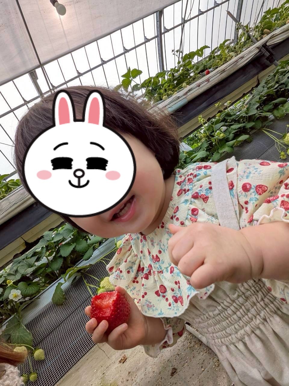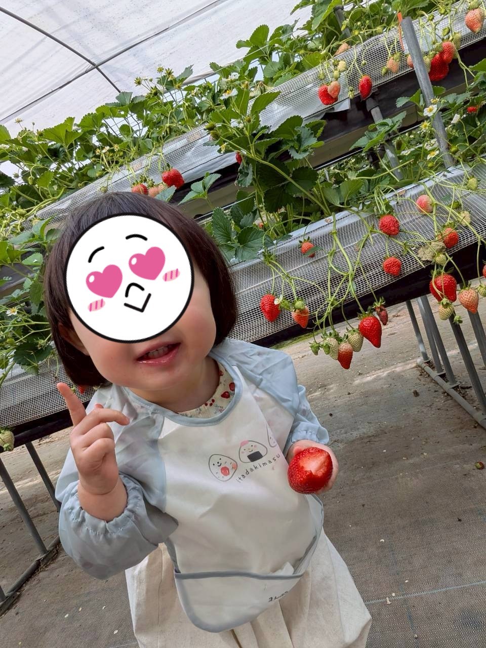 先日、保育園の行事で家族3人でいちご狩りに行ってきました。