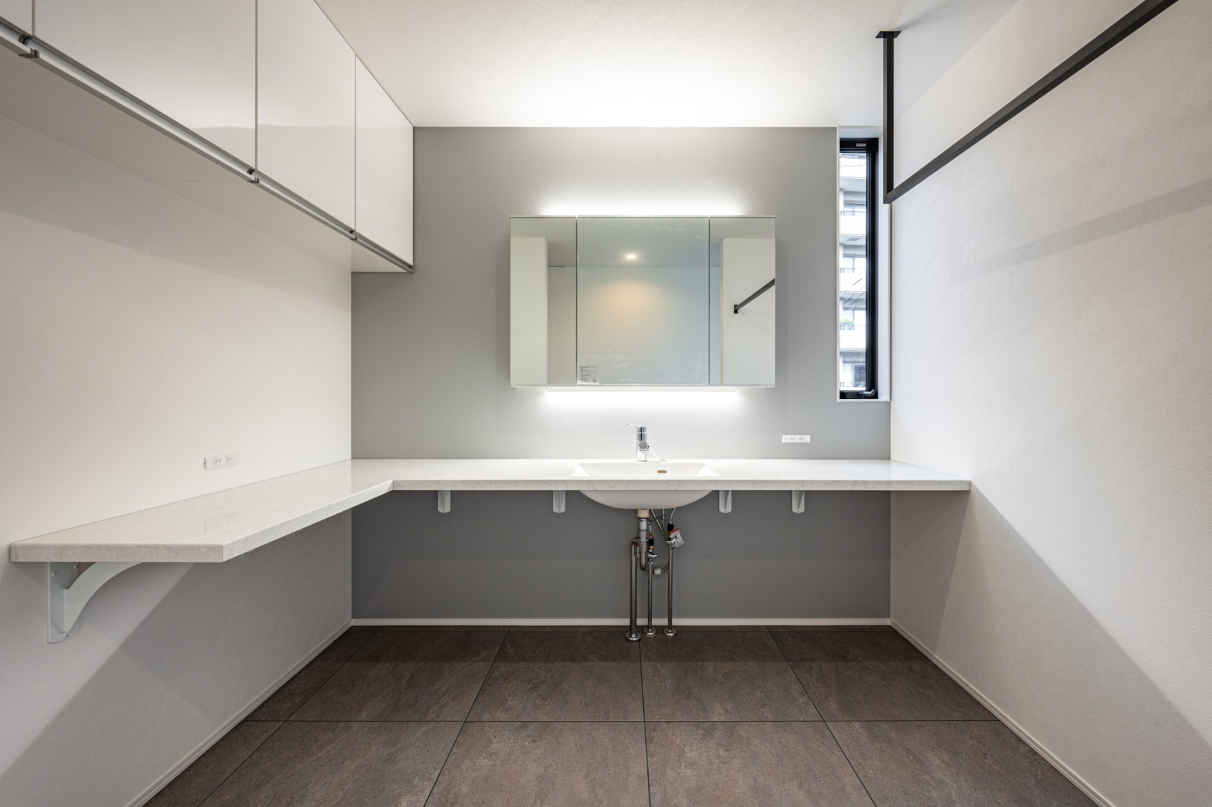 ・朝の身支度や帰宅後の手洗いも快適な広々洗面